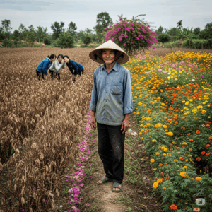 Làng tôi, Lộc An, nép mình bên dòng sông nhỏ, từ lâu nổi tiếng với nghề trồng hoa. Những luống cúc, vạn thọ,…