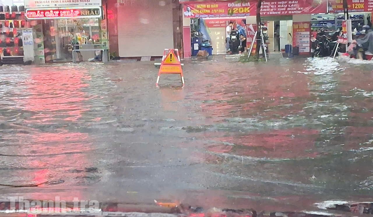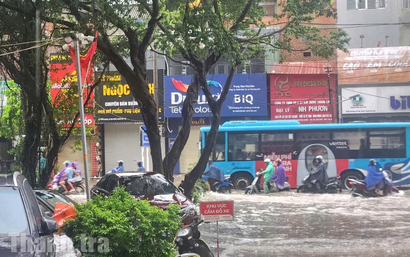 Một tuyến đường trên địa bàn phường Hà Đông ngập sâu. Ảnh: CTV