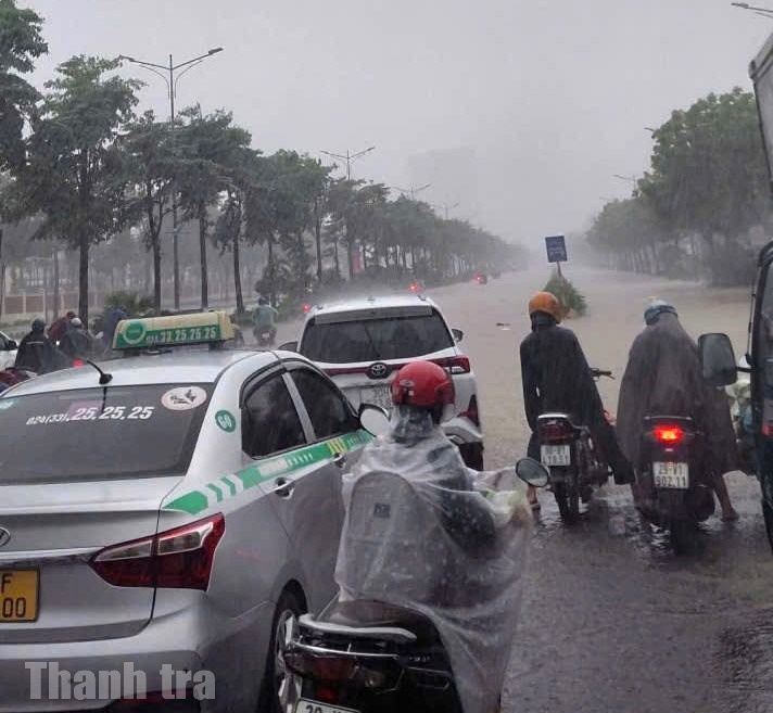 Các tuyến phố vốn là “rốn” ngập của Hà Nội như Tố Hữu, Nguyễn Tuân, Dương Đình Nghệ, Đại lộ Thăng Long (đoạn qua hầm chui Trung Hòa) nhanh chóng biến thành những “dòng sông”, sâu đến hơn nửa mét.